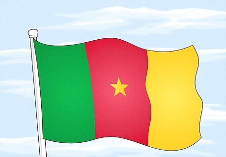 Cameroon The Cameroon flag has vertical green, red, and yellow stripes, with a yellow star in the center. The design was inspired by the French Tricolor flag, and the colors by the Pan-African flag. The current flag has been used since 1975. Symbolism: Green represents hope and the lush vegetation in the south of Cameroon; yellow symbolizes the northern savannas and the sun; red represents national sovereignty and unity.