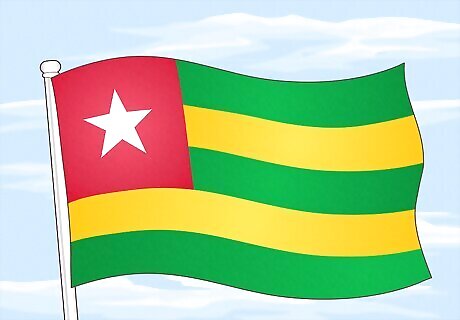 Togo The Togo flag has 5 horizontal green and yellow stripes (3 green and 2 yellow). There’s a red square in the top right corner, with a white star inside the square. This flag has been used since Togo gained independence from France in 1960. Symbolism: The five stripes represent the five administrative regions in Togo; green represents the people’s reliance on the land for sustenance; yellow represents labor and development; red stands for love, fidelity, and charity; white symbolizes purity.