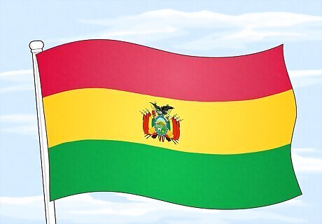 Bolivia The flag of Bolivia features horizontal red, yellow, and green stripes. In the center of the flag is Bolivia’s national coat of arms. This flag has been used since 1999, although an additional flag has been added to the coat of arms since its original debut. Symbolism: Red represents the valour of the Bolivian army; yellow symbolizes the country’s rich mineral resources; green represents the fertile land.
