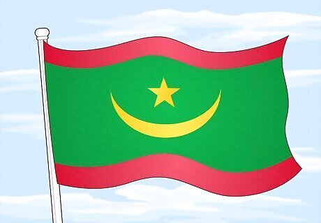 Mauritania The Mauritanian flag features red stripes on the top and bottom with a wider green stripe in the center. Within the green stripe are a yellow star above a crescent. This flag has been used since 2017, when the red stripes were added to the existing green flag with a yellow star and crescent. Symbolism: The green background and yellow star and crescent are Muslim symbols; yellow represents the sands of the Sahara; the red bands represent the country’s struggle for independence from French rule.