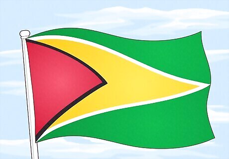Guyana The flag of Guyana has a green field with a red triangle bordered in black on the right side, with a wider yellow pennant bordered in white extending beyond the red triangle. This flag, nicknamed the Golden Arrowhead, has been in use since 1966. Symbolism: Green stands for Guyana’s lush fields and jungles; yellow represents mineral wealth; red symbolizes the sacrifices on the path to independence; white stands for the country’s rivers; black represents perseverance.