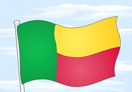 Benin The flag of Benin has a vertical green block on the left third of the flag. On the right of the flag, there’s a yellow block on top and a red block on the bottom. It was adopted in November 1960 and reinstated in 1998 after it was temporarily replaced in the 1970s as the result of a military coup. Symbolism: Yellow represents the savannas in northern Benin and the country’s mineral resources; green represents the palm groves in the south and the hope for renewal; red symbolizes the courage of the ancestors of Benin.