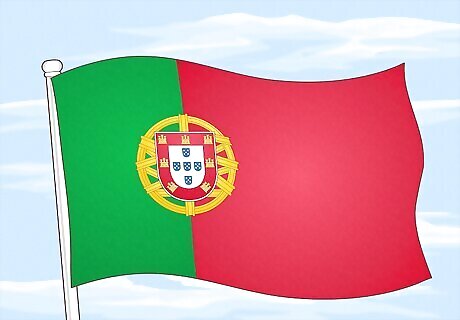 Portugal The flag of Portugal is green on the left third of the field and red on the remainder. On the division between the colors sit Portugal’s royal arms and the armillary sphere, a navigational tool. The arms originated in the 1100s and the sphere in the 1800s. This version of the flag has been used since 1911, when Portugal became a republic. Symbolism: Red stands for the blood spilled during the revolution that overthrew Portugal’s monarchy; green stands for hope for the future; the royal arms represent victory; the armillary sphere symbolizes Brazil.