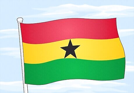 Ghana Like many other Pan-African nations, Ghana’s flag features horizontal stripes of red, yellow, and green. There’s a black star inside the center yellow stripe. This flag was flown from 1957 to 1962, then returned in 1966. Symbolism: Red stands for the blood of those who fought for independence; gold symbolizes Ghana’s mineral wealth; green represents rich forests; the black star symbolizes African emancipation.