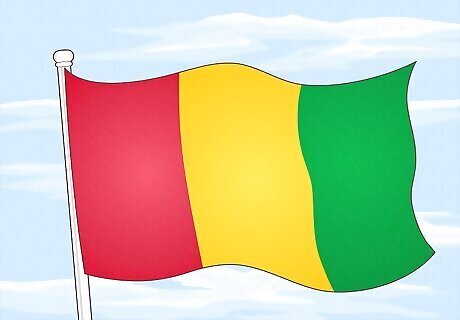 Guinea The flag of Guinea features a minimalist design that mimics the French Tricolor—three vertical stripes of red, yellow, and green. It was adopted in 1958 after Guinea became independent from France. Symbolism: Red symbolizes sacrifice and labor; yellow represents wealth, the sun, and justice; green stands for solidarity and agricultural wealth.