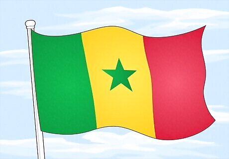 Senegal The Senegal flag features horizontal green, yellow, and red stripes, with a green star in the center yellow stripe. Its design was inspired by the French Tricolor. It was adopted in 1960 when Senegal became an independent country. Symbolism: Green represents hope and religion; yellow symbolizes wealth and natural riches; red stands for socialism and the struggle for independence.