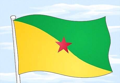 French Guiana (Unofficial) Officially, the flag of French Guiana is the French Tricolor. But the unofficial flag preferred by locals, which has been used since 1967, features a yellow triangle in the lower left and a green triangle in the upper right, with a red star in the middle. Symbolism: Yellow represents mineral wealth; green stands for the Amazon rainforest; the red star symbolizes socialism and the blood of local people.