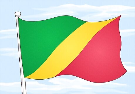 Republic of Congo The flag of the Republic of Congo has a green triangle on the left, a red triangle on the right, and a diagonal yellow stripe between the two triangles. It’s inspired by the Pan-African colors as well as the French Tricolor. It was originally introduced in 1959, and although it was replaced for a time by the country’s Marxist leadership, it returned in 1991 after the country once again obtained the right to free elections. Symbolism: Green represents agriculture and forests; yellow symbolizes friendship and nobility; red stands for the blood that was shed on the path to independence.