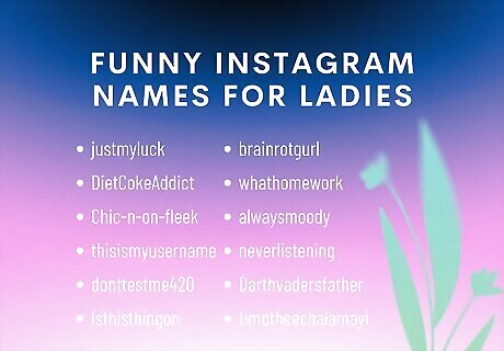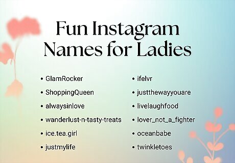 Pick a name that reflects your personality. Your Instagram handle will let users know what to expect before they even click on your profile, so make sure your handle accurately reflects the vibes you want to convey and that it matches your personality. For instance, if you're running a whimsigoth vintage shop, @DarthVader420 is…a pretty confusing handle. But it's a great handle for, say, a Star Wars meme account. A better name for your vintage shop might be @lavendermoon46 or something equally aesthetic and whimsical.