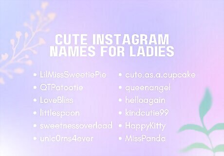 Show off your adorable personality with these names. The perfect Ig name for a cutie like yourself is sweet, lovable, and maybe a tad feminine—the perfect vibe to reflect the person behind the handle! LilMissSweetiePie QTPatootie LoveBliss littlespoon sweetnessoverload unic0rns4ever cute.as.a.cupcake queenangel helloagain kindcutie99 HappyKitty MissPanda Meet the wikiHow Experts Anyah Le Gilmore-Jones is a Social Media Marketing Expert who creates engaging brand experiences and leverages her passion for connecting people and ideas to drive organic growth for purpose-driven brands. Pete Canalichio is a Brand Strategist, Licensing Expert, and Founder of BrandAlive. With nearly 30 years of experience, he specializes in helping brands find the most authentic parts of their story to build a brand strategy. Sarah Harkleroad is a Marketing & Branding Expert and a Co-Founder and Brand Manager at Daor Design. With over 15 years of experience, she specializes in brand strategy, logo design, website design, and marketing for small businesses.