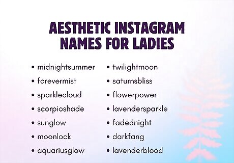 These names are whimsical, vibey, and✨aesthetic✨ Opt for an Instagram name that's a little more atmospheric and ethereal—something that showcases your mystical divine feminine energy, like these aesthetic handles: midnightsummer forevermist sparklecloud scorpioshade sunglow moonlock aquariusglow twilightmoon saturnsbliss flowerpower lavendersparkle fadednight darkfang lavenderblood