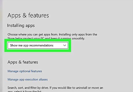 Allow the app through your security settings if you get an error. If you see a warning or security message that prompts you to confirm the action, follow the on-screen instructions. But if you see an error that says you can only install apps from the Microsoft Store, follow these steps: Windows 10: Click the Start menu and select Settings. Click Apps. Click Apps & features. Click the drop-down menu under "Installing apps" (the one that's currently set to "Allow apps from the Store only") at the top of the right panel, then select Show me app recommendations instead. If you don't see this option, click All apps from anywhere instead. Run the installer again. Windows 11: Click the Start menu and select Settings. Click Apps in the left panel. Click Advanced app settings. Click the dropdown menu next to "Choose where to get apps" and select Anywhere. Run the installer again.