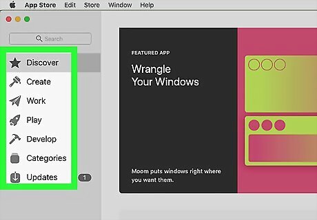 Browse or search for an app. Click a category in the left panel to browse by app type. If you want to search for a specific app (or type of app), type your search term(s) into the Search bar at the top-left corner of the window, and then press Return.