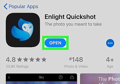 Open the app. When the app is finished installing, the "GET" or price button will change to one that says "OPEN." Tap OPEN to launch the app from the App Store, or tap the app's icon on the home screen. App icons are automatically added to the home screen upon installing. The most recently installed app will appear at the very end of the icon list. You can also find installed apps by swiping left on the Home screen until you reach the "App Library" screen. There, you can search for an app or scroll through the list.