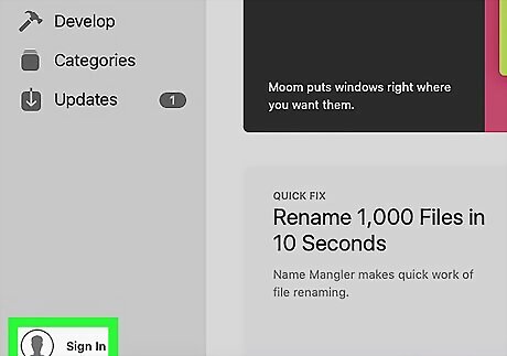 Sign in with your Apple ID. If you don't see your Apple ID at the bottom-left corner of the store, follow these steps to sign in now: Click Sign In at the bottom-left corner. Type your Apple ID login and password. Click Sign In.