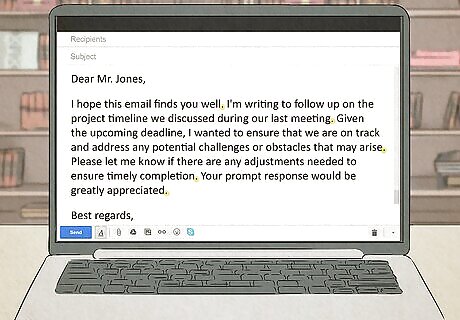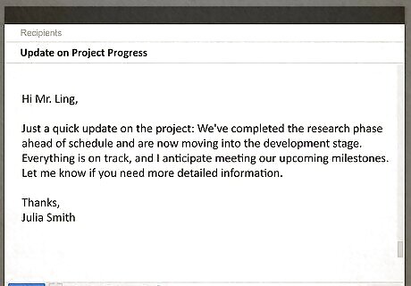 Maintain a professional tone throughout. Be mindful of the language you employ to avoid confusion or misinterpretation. Don’t say anything in an email to your boss or coworkers that you wouldn't say to them in person. Always use calm, polite, and congenial language even in situations where you don't feel that way yourself. Avoid using slang and profanity and use proper capitalization (in other words, don’t write in all caps or all lowercase).