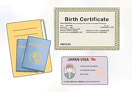 Prepare the necessary documents. Prospective parents must have numerous documents signed, notified, or otherwise authenticated. These documents include: birth certificates passports Japanese visas marriage certificates certificate of no criminal record (obtained from each parent's home city or state police department in the United States) certificate of legal address, employment, and bank statements copy of property ownership deeds (if applicable) biographic histories of both parents statement of consent to adopt by the child's current guardian statement of prospective parents' intent to adopt home study approved by a licensed adoption agency two character references