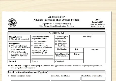 Fill out Form I-600A. Once you've selected an adoption service you'll need to fill out Form I-600A, the Application for Advance Processing of Orphan Petition with the United States Citizenship and Immigration Services. This form is used by the US Citizenship and Immigration Services (USCIS) to evaluate your qualifications as a parent and make a formal judgment on whether or not you qualify for an international adoption. Form I-600A must be completed before the actual adoption process begins. Even if you have already identified a child to adopt from Japan, the child must remain in Japan while Form I-600A is filed in the United States. If your application is approved by the USCIS, you will receive a written notification through the mail. Your approval is valid for 18 months. If the adoption has not been completed in that time period, you will have to begin the application process from the beginning. Because Japan is a non-Hague Convention country, you do not need to fill out Form I-800A, the Application for Determination of Suitability to Adopt a Child from a Convention Country.