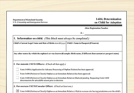 File Form I-604 with the USCIS. Form I-604, the Report on Overseas Orphan Investigation, is used to verify the child's orphan status. Even though the I-600 can be completed before you have a child in mind for adoption, the I-604 must be completed only after you have a specific child in mind. This investigation will be performed by a consular office during the child's interview for an immigrant visa, and may take upwards of several months to complete.