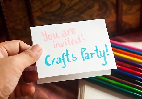 Send out invitations. Once you decide on the date and location of your kids’ craft party, you will want to send out invitations. You can send traditional paper invitations in the mail. You can also invite guests via social media, email, or telephone. Make sure you ask guests to RSVP by a certain date so that you will know how many crafters to plan on. Send out the invitations 2-4 weeks before the party.
