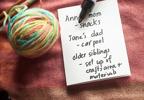 Ask other adults to help. If your guests’ parents are staying for the craft party, ask them to help out. You can assign them different roles, like refilling supply stations or checking in with individual kids to make sure their crafting is going smoothly.