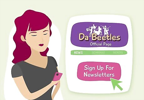 Begin by signing up for online newsletters and Facebook pages of bands which you would like to see in concert as well as local venues. This will ensure that you are quick to find out about the latest 'gigs' in time to buy tickets. Not all shows are advertised on the radio or paper. Some ticket and tour sites allow you to sign up for cell updates whenever your favorite artists add new dates in your area.