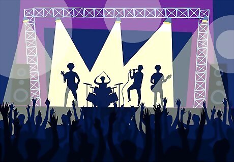 Determine the start time of the show by checking your ticket. The venue website can also update you of changes. Some bands actually go on stage at the time indicated on the ticket. There might be opening acts before the main artist performs, but don't arrive too late. Country bands, adult contemporary artist and more family oriented events will start closer to the ticket time or at the ticket time.