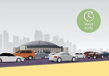 Coordinate your departure time allowing for traffic. Some concerts and bands have a fan base which likes to tailgate (huge parking lot party) before the show. The venue can tell you if this is expected for the show you are attending. These festivities can start in the morning and go until show time. Plan to leave early, take food, beverage, toilet paper and a change of clothes. Don't leave your belongings unattended or your car unlocked.
