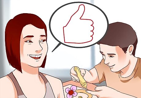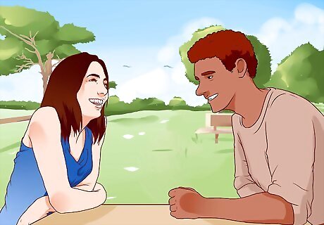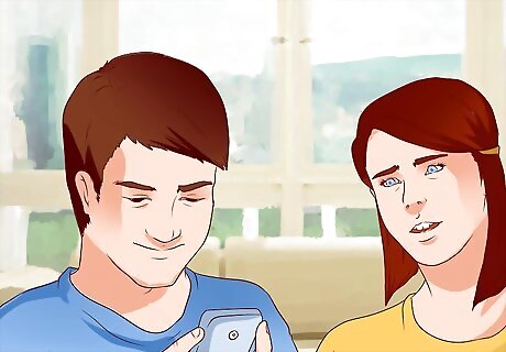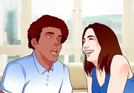 Find the humor. If things turn too serious while you’re hanging out, lighten the mood with laughter. Laughing releases feel-good chemicals that help dissipate stress hormones. And sharing a chuckle might help you share a solution to any issues at hand. A few ways to lesson tension in the moment might include: Watching a funny video online Telling them a joke Following a comedian on Twitter