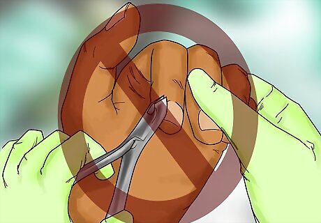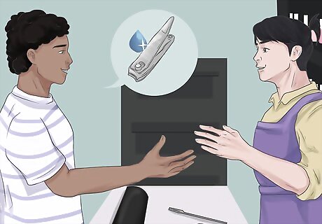Don't let the nail technician cut your cuticles. In order to avoid getting infections in your nails, do not allow your nail technicians to cut back your cuticles. Your cuticles provide protection against infections naturally. If they are cut back, you are more likely to get an infection. If your technician wants to work on your cuticles, only allow them to be gently pushed back after they have been soaked and softened in water. You should not cut your own cuticles or shave your legs before you go. These things provide perfect places to contract infections.