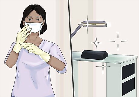 Watch the workers. Even in the facility is clean, the actions of the workers can affect the sanitation of the salon. When you walk into the facility, watch how the workers deal with their tools. Watch to see how they put the implements away. See if they wash their hands between patrons and after working with different parts of the body. Make sure the workers are keeping their own stations clean by sanitizing the tables and implements between each patron. Also look to see how clean they are themselves. You can also see if your technicians wear gloves, which will help limit possible cross contamination.