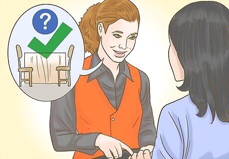 Ask customers if they have a seating preference. Guests with a larger frame might not be comfortable squeezed into a small booth, and customers who have trouble walking might prefer a seat close to the door so they don’t have to walk as far. Make your best judgement call, but don’t be afraid to ask your customers what type of seating they’d prefer.