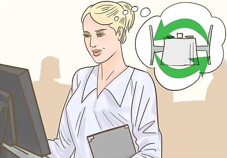 Walk the floor to keep track of the tables. Sometimes during a hectic dinner shift, you might lose track of who’s already left. If that’s the case, ask someone to watch your host stand and walk the floor with your seating chart. Look for any tables that are marked as seated but which are actually free. You can also check to see which customers have moved on to dessert, as the server in that section will probably be ready for a new table soon.