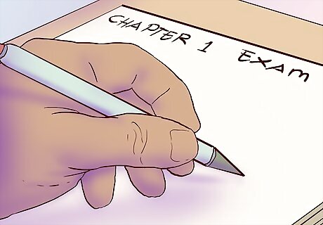 Do the practice tests at the end of each chapter. To test your knowledge, do the practice tests at the end of each chapter. Spend extra time studying the information that you got wrong. Include the information you missed in your flash cards so you won't get it wrong on the pop quiz. If your book doesn't have practice tests at the end of each chapter, you can make your own practice tests. Make your own practice tests by creating questions based on your notes. Make these questions open-ended questions where you have to write out the answers. By writing out the answers, you will remember the information better. Have a friend create a practice test for you. This is a great way to make preparing for pop quizzes fun and effective.