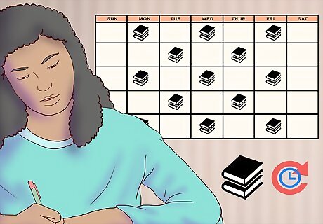 Create a study plan. Create a study plan by outlining your study goals, and how much time you will spend studying and reviewing each week. It is important that you write your study plan down so that you can stick to it. Identify and write down your study goal. For example, “I want to be prepared for my pop quizzes.” In a planner or on a calendar, set aside how many hours per week you think you will need to be prepared for your pop quiz. Then, find times throughout the week where you can fit in your study hours. For example, one hour after dinner, one hour each Saturday, or one hour before or after work.