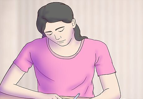 Calm your nerves. If you suffer from test anxiety the day of the pop quiz, practice breathing techniques in class. By learning to control your breathing, you can lower your heart rate, and thus calm your nerves and restore your sense of confidence. Practice breathing techniques by closing your eyes, breathing through your nose, and exhaling through your mouth. Try to do this at least three times. As you are breathing in, visualize that you are breathing in positivity and confidence. Then, as you exhale, visualize that your are releasing negativity, i.e., anxiety, from your system. Your mind should clear, and you should be able to remember how well prepared you are for the pop quiz. You can also calm your nerves by using your previous quiz experiences to help you predict what will be asked on the pop quiz, and how the questions will be asked.