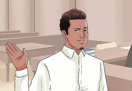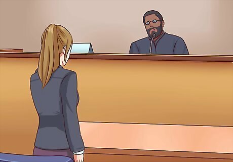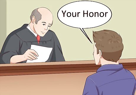 Address the judge with respect. Whenever you speak to the judge, always say, “Your Honor” or “Judge [last name].” Also stand when the judge enters or leaves the courtroom.