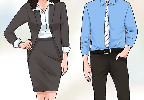 Dress appropriately. Although you do not need to wear a suit to represent yourself in court, you should still do your best to look clean and neat. Men should wear long pants with a belt, a collared-shirt, and a tie. Women should wear a dress, skirt (not too short), or slacks with a nice blouse or top. In no circumstances should you wear shorts, hats, halter or see-through tops, flip flops, belly shirts, ripped jeans, or baggy pants that hang below the hips. Also avoid clothing with offensive words or imagery.