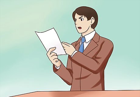 Deliver a closing argument. Each side also delivers a closing argument. You should use yours to sum up the evidence and explain how it supports your case. Be confident and look the jurors in the eyes. After explaining how the evidence supports your case, rebut the other side’s evidence. Explain why their witnesses are mistaken or not believable. Begin and end strong. Research shows that people remember the first and last things that they hear. Accordingly, you should begin and end your closing statement with strong points. Remind the jurors of the most persuasive evidence in your case.