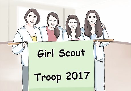 Join a troop. There are a couple of different ways to join a troop. For example, some schools have a Girl Scout troop directly affiliated with them. These are often run by a parent whose child is in the school. If there isn't a troop connected to your school, you can contact the Girl Scout Council in your area to find all the currently operating troops. To contact the Girl Scout Council, simply go online to the Girl Scout website, click Join Now, enter your zip code, and voila! They should direct you to your local council who will help you find a troop.