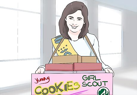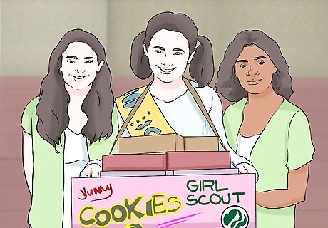 Sell cookies. Most people know Girl Scouts because of their cookies, which are sold by troops seasonally. The money from these cookies helps fund activities and events for every troop. Every troop has a different date and time for cookie sales, which depends on their location. The purpose of selling cookies, however, is for more than just profits. As a Girl Scout participating in cookie sales you will learn goal setting, decision making, money management, people skills, and business ethics.