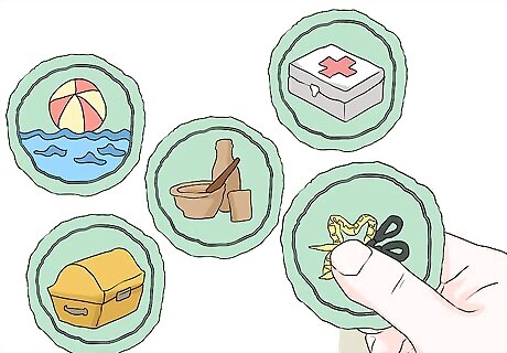 Get badges. You can do this with your troop or on your own. The purpose of earning badges is to follow your interests and learn new things. For example, if you're into inventing new things, cooking, or painting, there's a badge for you. You can find a book of the different types of badges online for every level of Girl Scouts. You can even choose your own activity, find a teacher, and design your own badge for it. To earn a badge, simply decide on an activity you'd like to pursue, then look at the badge book for your level (i.e. Daisy, Brownie, or Junior) and find one that fits your interests. The book will then tell you what steps to follow to complete the requirements to earn your badge. For example, as a Cadette you can earn a Night Owl badge which requires you to explore the outdoors after hours. To earn this badge you have to meet people who work at night and hold a nighttime party. Then, upon proof of completion, you can add this badge to your sash or vest.