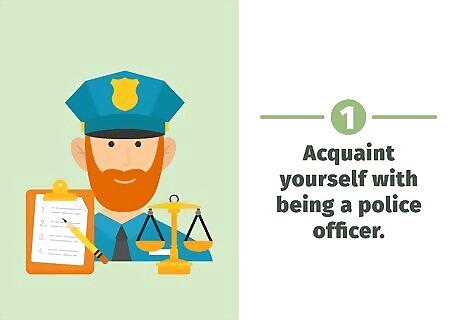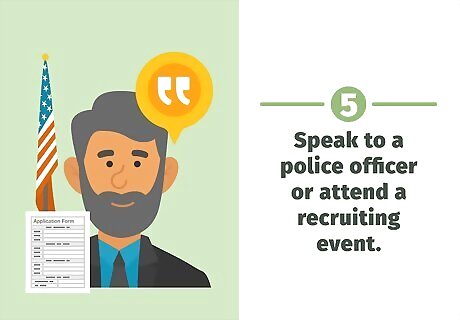 Speak to a police officer or attend a recruiting event. If you have lingering questions or want to get a better sense of what being a police office entails, speak with a local police officer or attend a recruiting event. This can help further inform your decision to either pursue this career path or consider something else. The New Jersey State Police offer different recruiting events that provide information on a variety of topics including your initial application, the screening process, the written examination, benefit, or what it’s like to be a police officer on a daily basis.