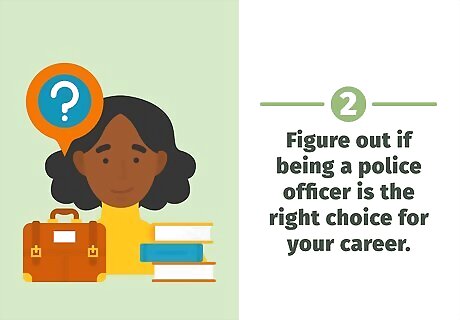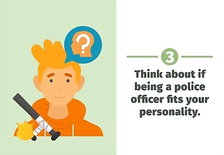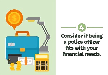 Figure out if being a police officer is the right choice for your career. After you have learned some of the basic facts of the law enforcement, think about if pursuing this career path is right for you and your lifestyle. Think about how being a police officer will fit into your lifestyle. Knowing whether or not the time, emotional, and physical demands fit in with your lifestyle is important if you want to be a successful law enforcement agent. Are you able to handle the physical demands? Do you like your weekends free? Can you be available at all times, or maybe even in some cases even when you’re on vacation?