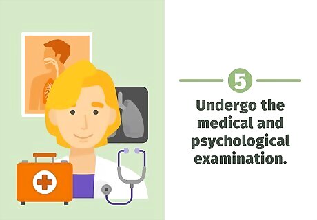 Undergo the medical and psychological examination. Before you attend the police academy, you must pass tests examining your mental and physical state. They help make sure that you can perform essential functions of police work and if you’re suitable for law enforcement. The physical exam may require you to submit medical records. It also tests for problems with vision and drug use. The psychological exam will include questions that help determine if you are mentally able to handle the rigors of being a police officer. If you are found unfit during the medical and psychological exam, New Jersey police officials will rescind your conditional offer to attend the Police Academy.