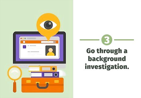 Go through a background investigation. After you’ve successfully completed the application screening, PQT, and written examination, state police officials will conduct a background investigation. The background check will probe various parts of your life to assess fundamental characteristics. The background checks for integrity, good moral character, reliability, responsibility, dependability and ethical judgment to do their duties as a police officer. The background check will review information including: personal data such as citizenship, voter registration, and if you have tattoos; educational and extra-curricular activity information; military service; employment history; criminal history; and financial status. You background check may include interviews of your spouse, partner, dependents, relatives, associates, and friends. You must be truthful on your application. If you are disqualified for any reason during the background check, you may not reapply to be a police officer for one year.