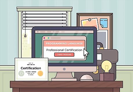 Test for certification in specific coding fields. Search online for different certification exams that you can take for different programming languages. Use the resources provided on the official website to test your knowledge at an entry-level, intermediate, or professional level. To qualify for more high-level jobs in the software architecture field, complete and pass the most advanced exam offered. You need to gain lower certifications before applying for an advanced certificate. Some exams need to be taken in person, like the Associate- and Professional-Level Python certification exams.