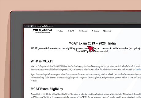 Take the MCAT exam so you can apply to medical school. Go online and register for The Medical College Admission Test (MCAT) during the spring before you graduate from your pre-med school. Select the nearest test center and arrive at least 15 minutes early on the scheduled date. Complete the entire multiple-choice test during the testing period and wait about 1 month to get your results back. Usually, a score around 510 is considered good, but it varies on the exam averages. The MCAT usually lasts over 6 hours with breaks and contains sections about biological foundations; chemical and physical foundations; psychological, social, and biological foundations of behavior; and critical analysis and reasoning. There are many practice tests and study guides for the MCAT online.