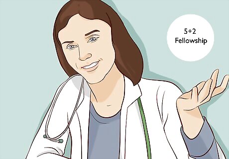 Choose a 5-2 fellowship for certification in vascular and general surgery. In a 5+2 program, you’ll spend the first 5 years completing a clinical residency for general surgery. After that, you will spend 2 years focusing on vascular surgery practices so you can gain experience in the field. If you plan on opening a private practice or you also want the option to work as a general surgeon, look for 5+2 fellowship options for your residency. Some locations may offer all 7 years at the same location, while others may have you complete your general residency and vascular fellowship separately. If you performed well in medical school, you may qualify for a 4+2 early specialization program, which allows you to start performing vascular surgery sooner. Residencies are when you work in a hospital or clinic for basic surgical procedures while fellowships are the training periods where you learn specialized skills in a specific branch of medicine.
