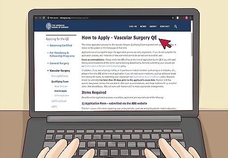 Take the Vascular Surgery Qualifying Exam when you finish your fellowship. Fill out the application for the Qualifying Exam (QE) online to receive a registration letter. Register for the test date listed in the letter to reserve a spot at the nearest testing center. Arrive at your testing center at least 15 minutes early and complete the exam on the provided computer. You have 4 opportunities within 4 years to take and pass the exam before you need to register again. You can find registration for the QE here: https://program.absurgery.org/default.jsp?app_vqe_inst. You will need to make an account on the website before you’re able to register. The QE consists of 250 multiple-choice questions about different types of patient care in regards to vascular surgery and is given in 4 blocks that are 90 minutes each. You will get the results of the qualifying exam within 1–2 months of taking it. You can fill out the application online here: https://program.absurgery.org/default.jsp?app_vqe_inst.